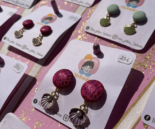 Boucles d’oreilles modèle "Mini Sidonie coquillage" pendantes esprit rétro